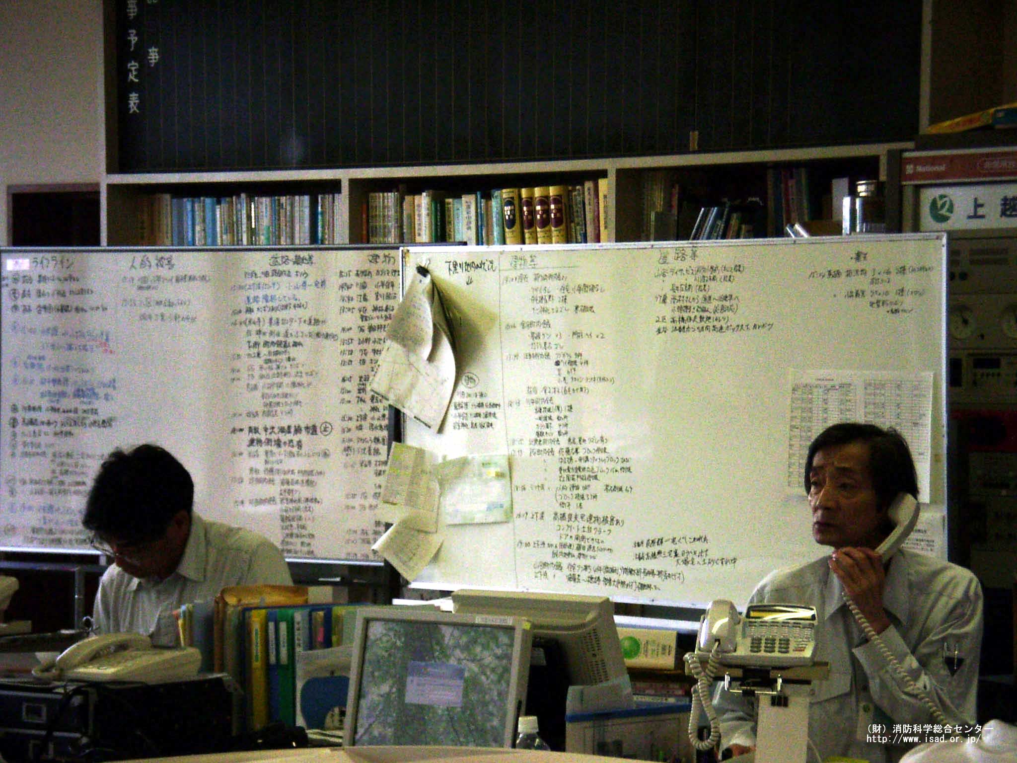 被害状況を示すホワイトボード